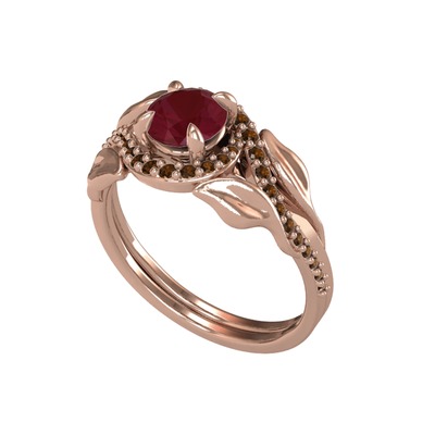 Kök yakut ve dumanlı kuvars 925 ayar rose altın kaplama gümüş yüzük