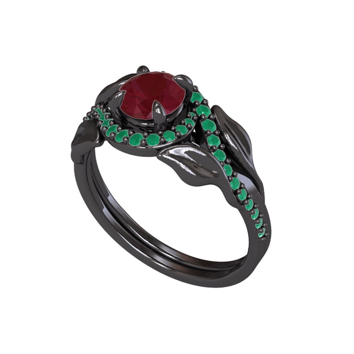 Kök yakut ve kök zümrüt 925 ayar siyah rodyum kaplama gümüş yüzük