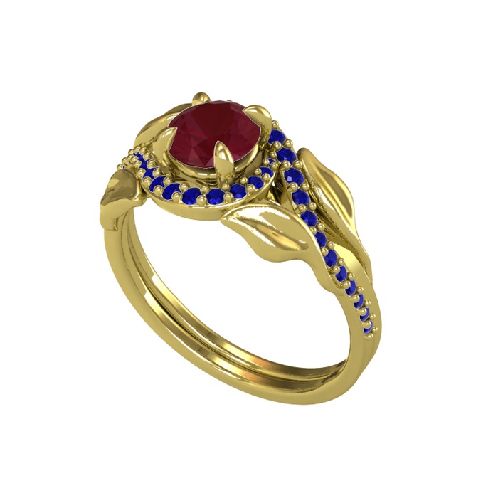 Kök yakut ve lab safir 14 ayar altın yüzük