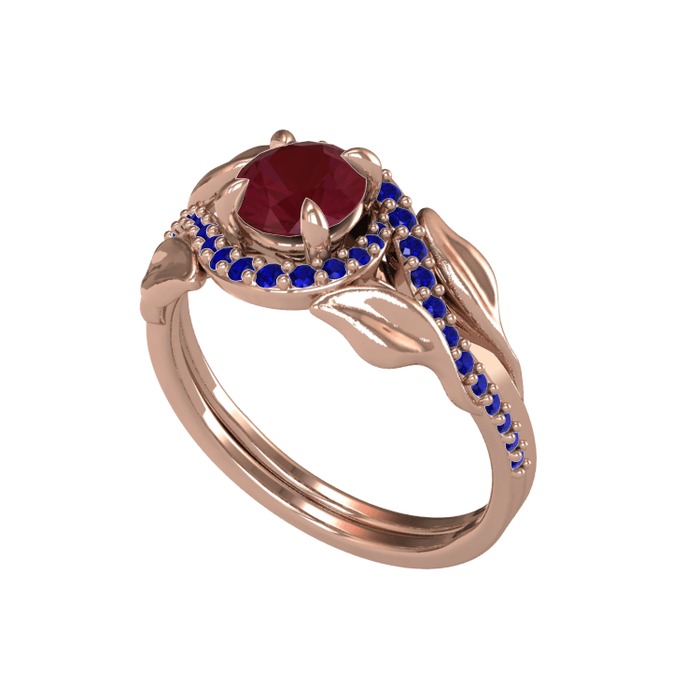 Kök yakut ve lab safir 925 ayar rose altın kaplama gümüş yüzük