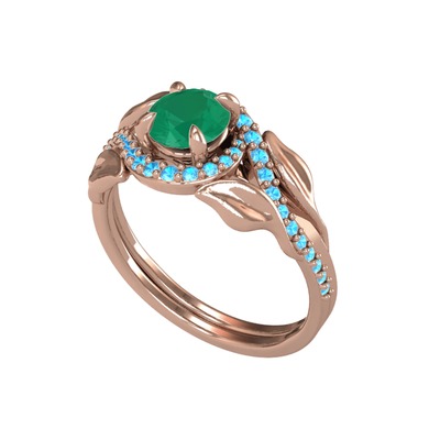Kök zümrüt ve akuamarin 14 ayar rose altın yüzük