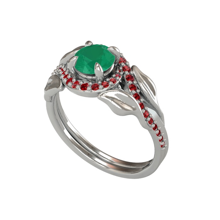 Kök zümrüt ve garnet 18 ayar beyaz altın yüzük