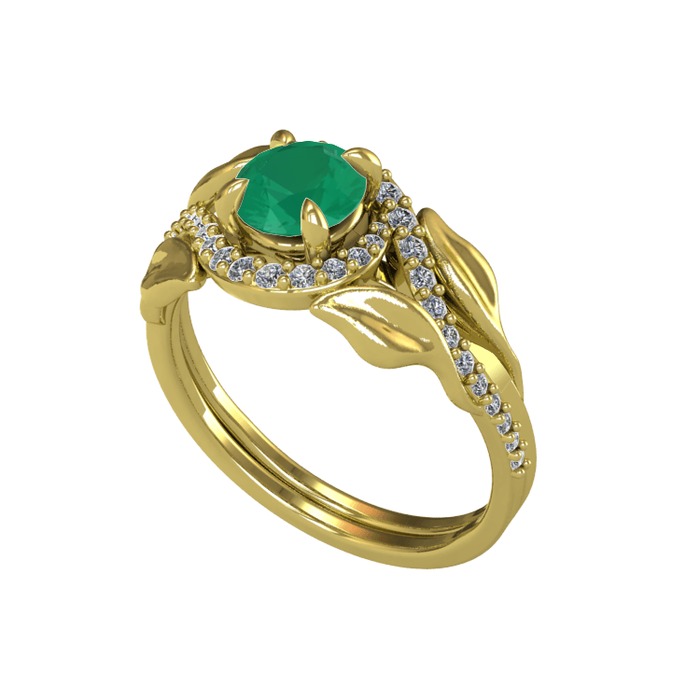Kök zümrüt ve pırlanta 14 ayar altın yüzük (0.76 karat)