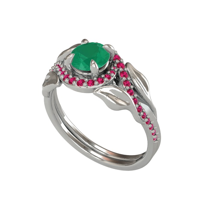 Kök zümrüt ve rodolit garnet 14 ayar beyaz altın yüzük