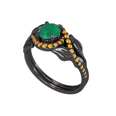 Kök zümrüt ve sitrin 925 ayar siyah rodyum kaplama gümüş yüzük