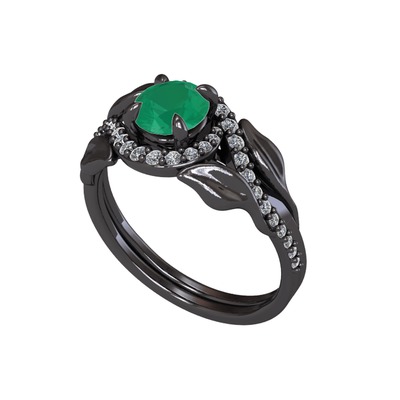 Kök zümrüt ve swarovski 925 ayar siyah rodyum kaplama gümüş yüzük