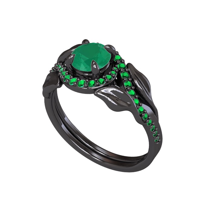 Kök zümrüt ve yeşil kuvars 925 ayar siyah rodyum kaplama gümüş yüzük