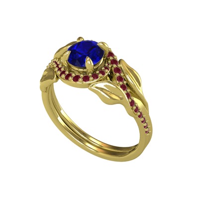 Lab safir ve kök yakut 18 ayar altın yüzük