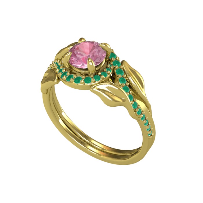 Pembe kuvars ve kök zümrüt 8 ayar altın yüzük