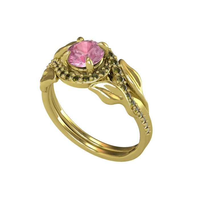 Pembe kuvars ve peridot 14 ayar altın yüzük