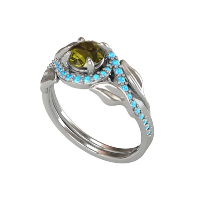 Peridot ve akuamarin 18 ayar beyaz altın yüzük