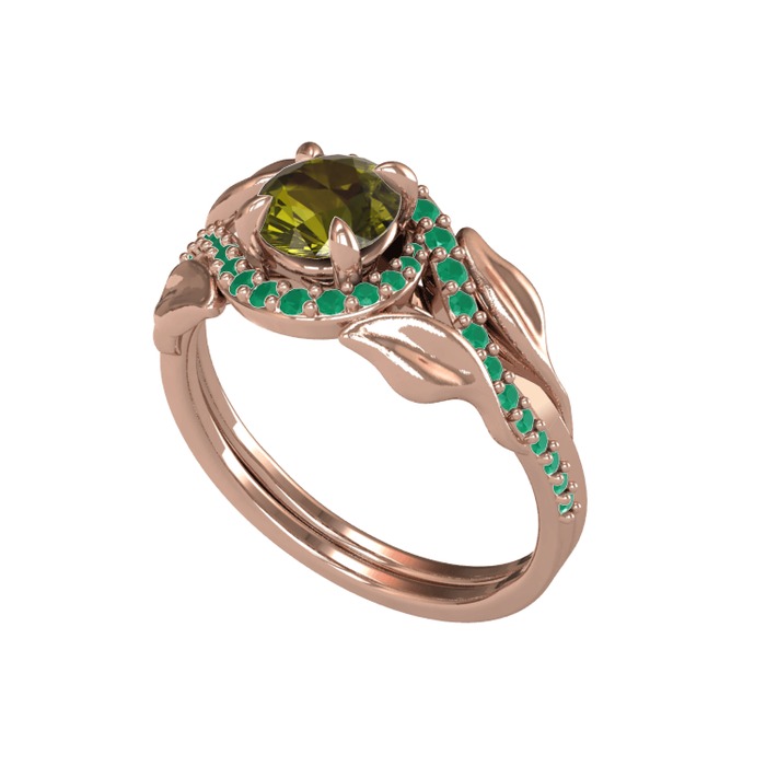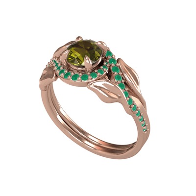 Peridot ve kök zümrüt 14 ayar rose altın yüzük