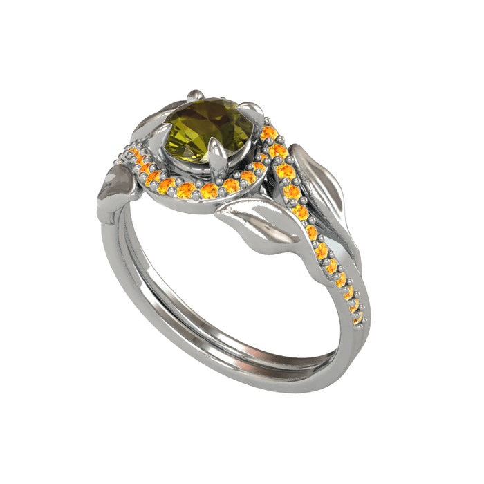 Peridot ve sitrin 18 ayar beyaz altın yüzük