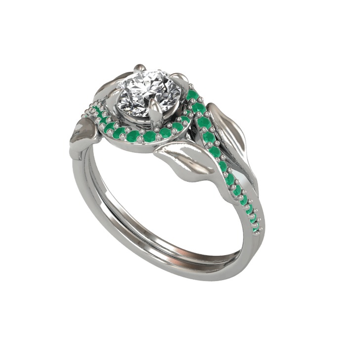 Pırlanta ve kök zümrüt 8 ayar beyaz altın yüzük (0.92 karat)