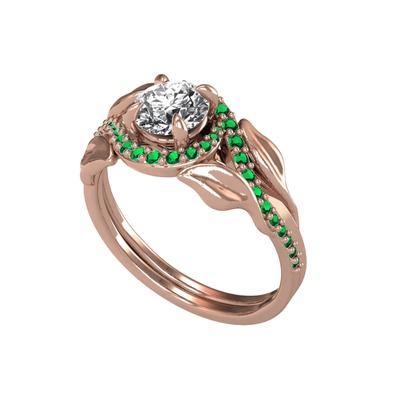 Pırlanta ve yeşil kuvars 14 ayar rose altın yüzük (0.92 karat)