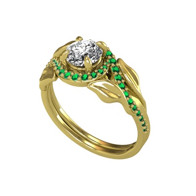 Pırlanta ve yeşil kuvars 925 ayar altın kaplama gümüş yüzük (0.92 karat)