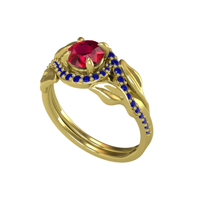 Rodolit garnet ve lab safir 14 ayar altın yüzük