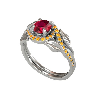 Rodolit garnet ve sitrin 8 ayar beyaz altın yüzük