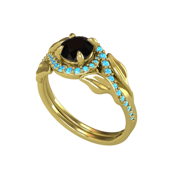 Siyah zirkon ve akuamarin 14 ayar altın yüzük