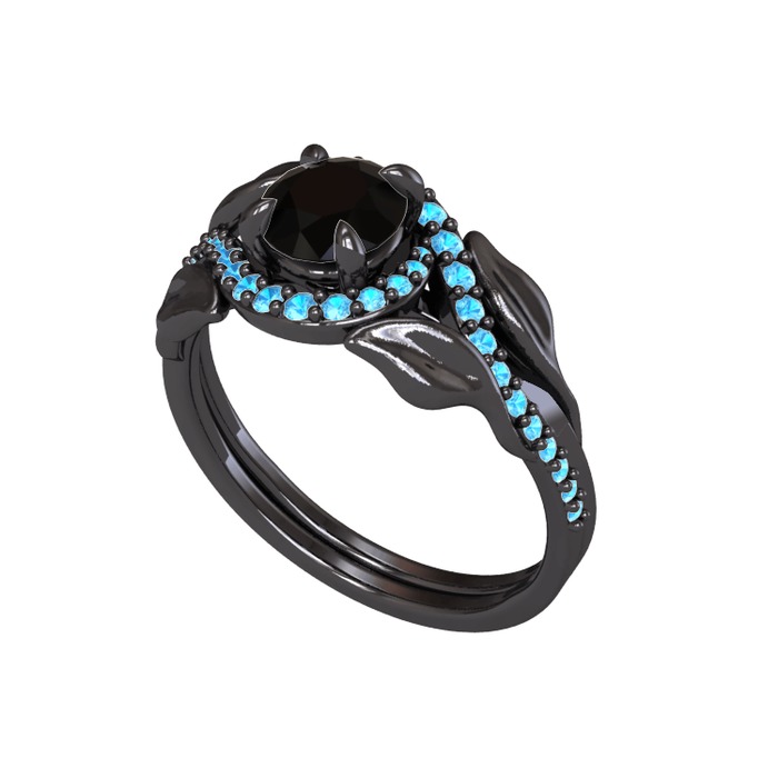 Siyah zirkon ve akuamarin 925 ayar siyah rodyum kaplama gümüş yüzük