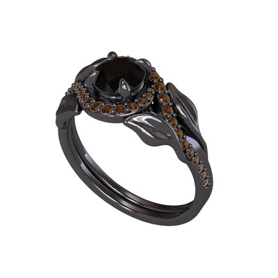 Siyah zirkon ve dumanlı kuvars 925 ayar siyah rodyum kaplama gümüş yüzük