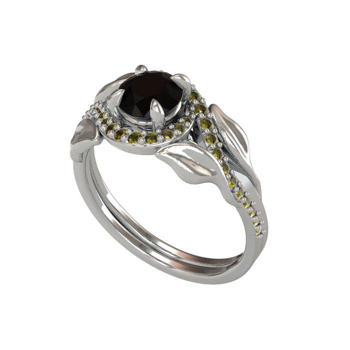 Siyah zirkon ve peridot 18 ayar beyaz altın yüzük