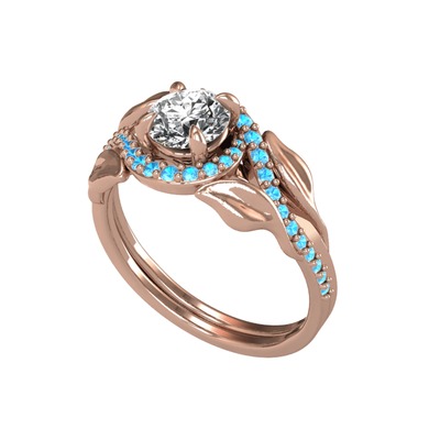 Swarovski ve akuamarin 925 ayar rose altın kaplama gümüş yüzük