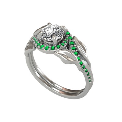 Swarovski ve yeşil kuvars 18 ayar beyaz altın yüzük
