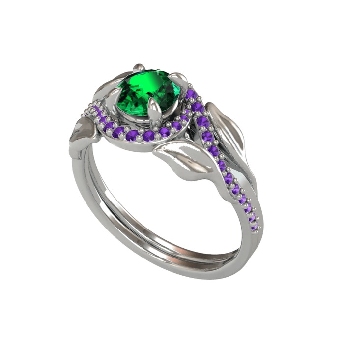 Yeşil kuvars ve ametist 8 ayar beyaz altın yüzük