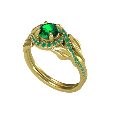Yeşil kuvars ve kök zümrüt 18 ayar altın yüzük