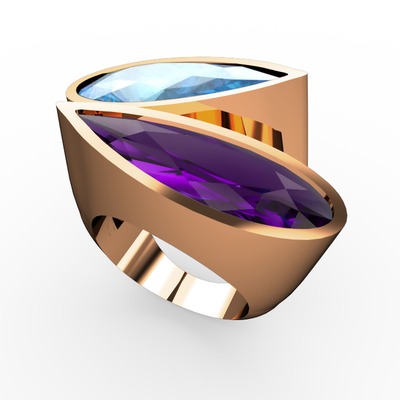 Akuamarin ve ametist 8 ayar rose altın yüzük