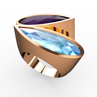 Ametist ve akuamarin 925 ayar rose altın kaplama gümüş yüzük