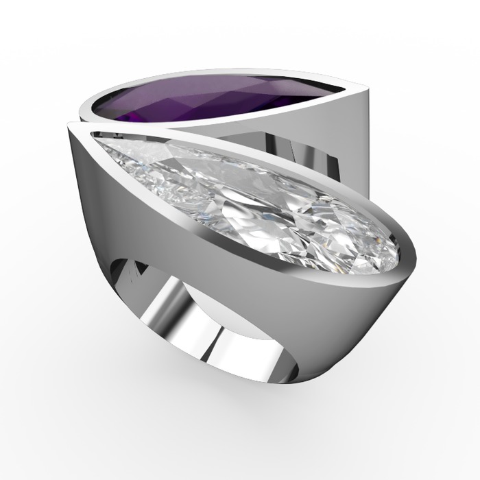 Ametist ve beyaz zirkon 18 ayar beyaz altın yüzük