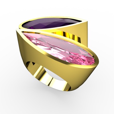 Ametist ve pembe kuvars 8 ayar altın yüzük