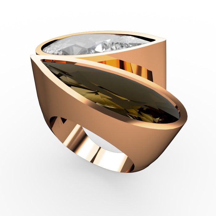 Beyaz zirkon ve dumanlı kuvars 14 ayar rose altın yüzük