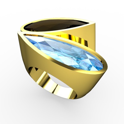 Dumanlı kuvars ve akuamarin 8 ayar altın yüzük