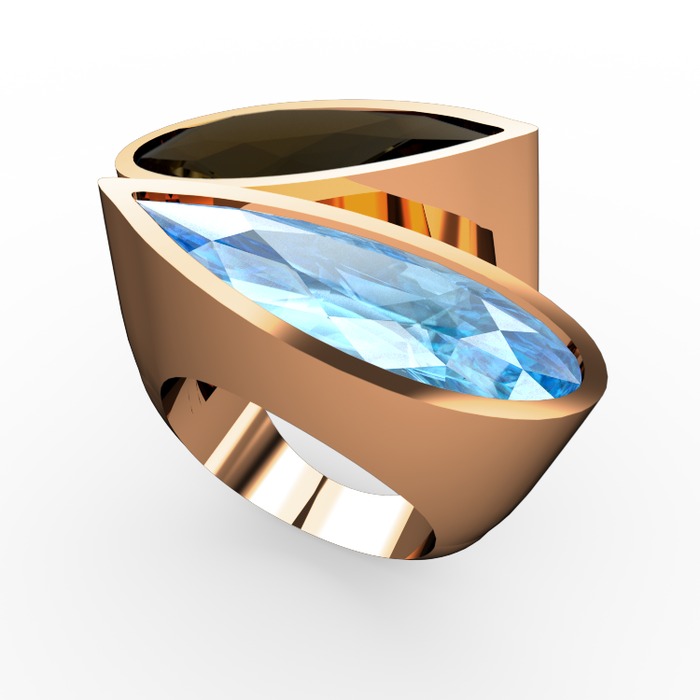 Dumanlı kuvars ve akuamarin 8 ayar rose altın yüzük