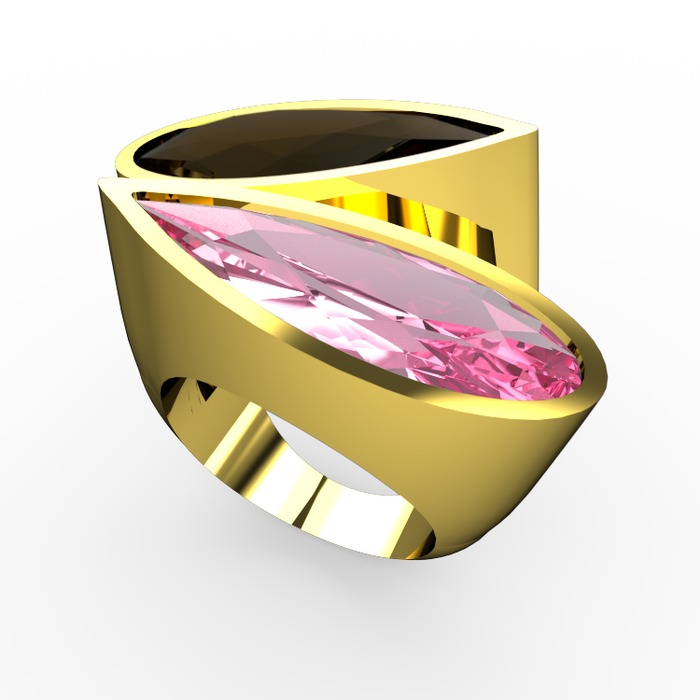 Dumanlı kuvars ve pembe kuvars 14 ayar altın yüzük