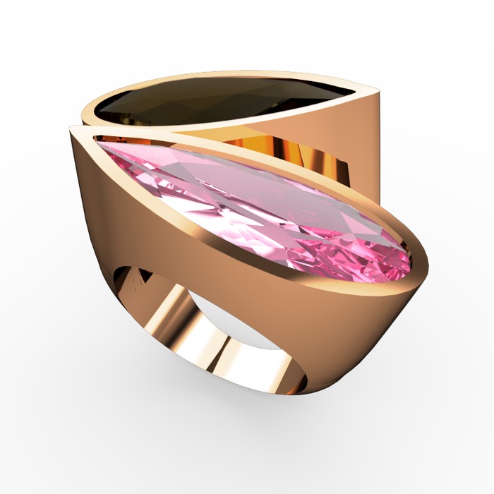 Dumanlı kuvars ve pembe kuvars 8 ayar rose altın yüzük
