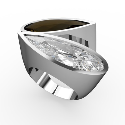 Dumanlı kuvars ve swarovski 18 ayar beyaz altın yüzük