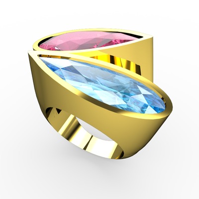 Pembe kuvars ve akuamarin 8 ayar altın yüzük