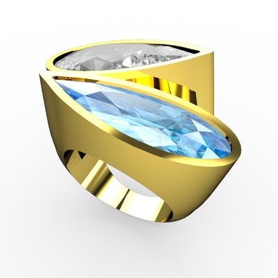 Swarovski ve akuamarin 18 ayar altın yüzük