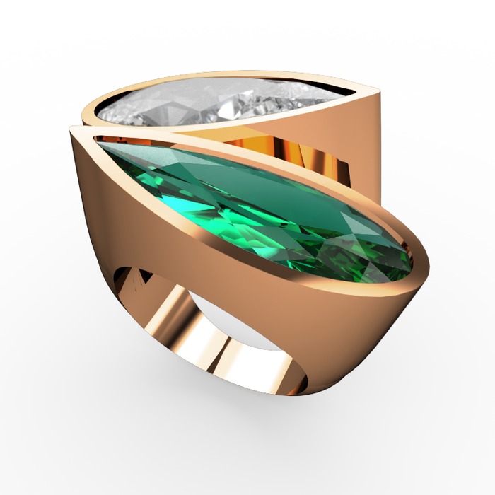Swarovski ve yeşil kuvars 18 ayar rose altın yüzük