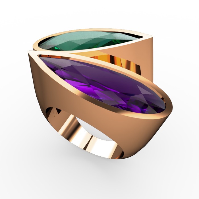 Yeşil kuvars ve ametist 18 ayar rose altın yüzük