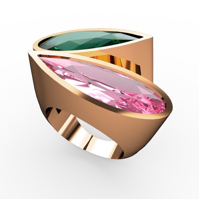Yeşil kuvars ve pembe kuvars 8 ayar rose altın yüzük