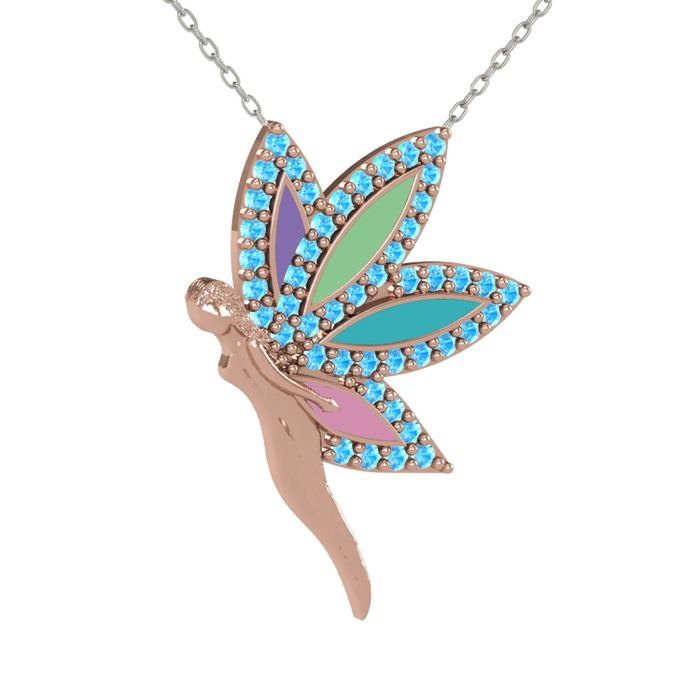 Akuamarin 8 ayar rose altın kolye (40 cm beyaz altın rolo zincir)
