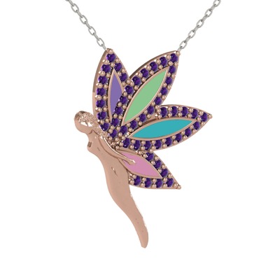 Ametist 14 ayar rose altın kolye (40 cm beyaz altın rolo zincir)