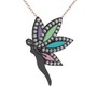 Beyaz zirkon 925 ayar siyah rodyum kaplama gümüş kolye (40 cm rose altın rolo zincir)