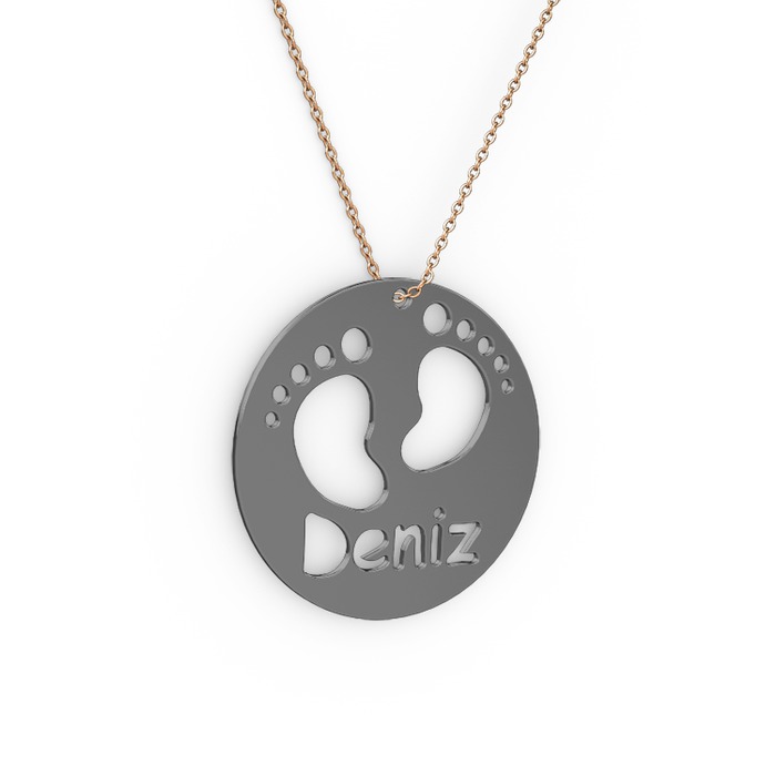 925 ayar siyah rodyum kaplama gümüş kolye (40 cm rose altın rolo zincir)
