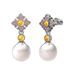 Inci ve sitrin 14 ayar beyaz altın küpe